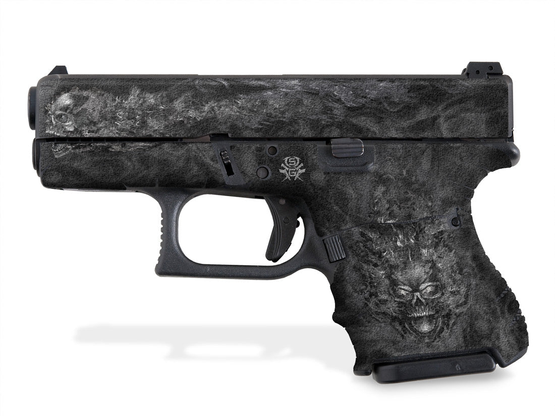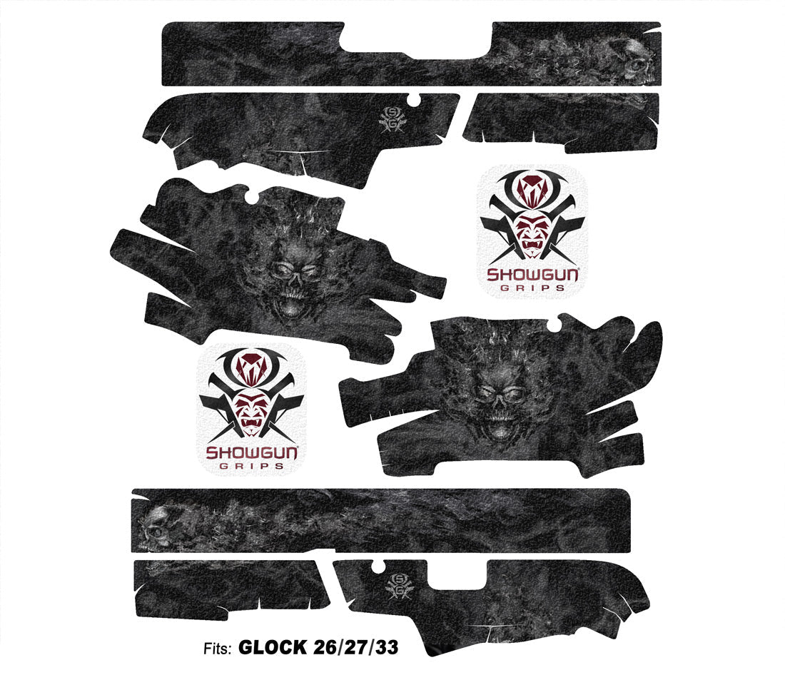 Decal Grip Kit for Glock 27 Gen 3 and Gen 4 – NITRO design. Provides a better grip on the short frame of the G27, giving you more control. Features a textured, rubber-like grip surface. Cover just the frame or add grip the slide as well.