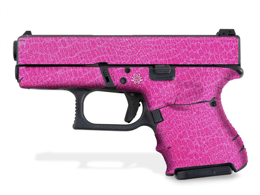 Decal Grip Kit for G27 Gen 3 or Gen 4 – Reptilian design. Provides a better grip on the short frame of the Glock 27, giving you more control. Features a textured, rubber-like grip surface. Cover just the frame or add grip the slide as well.