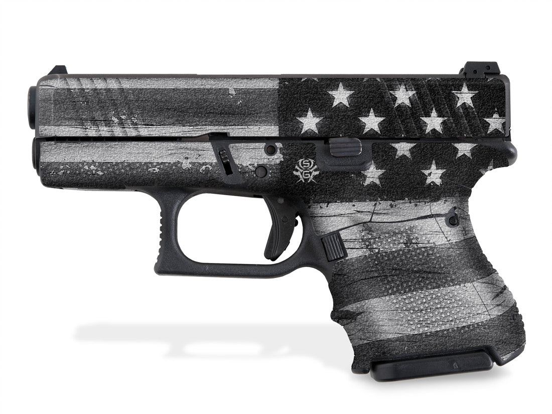 Decal Grip Kit for G27 Gen 3 or Gen 4– Subdued Flag design. Provides a better grip on the short frame of the Glock 27, giving you more control. Features a textured, rubber-like grip surface. Cover just the frame or add grip the slide as well.