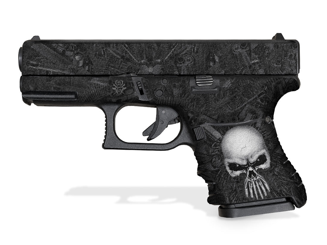 Showgun Decal Grip for Glock 29SF – Features a rubberized, textured grip surface to give you a better hold of the shorter frame of the G29 SF.  Includes trim-to-fit decals to cover factory base plate, extended base plate or aftermarket magazine extension (not shown). Arsenal design.