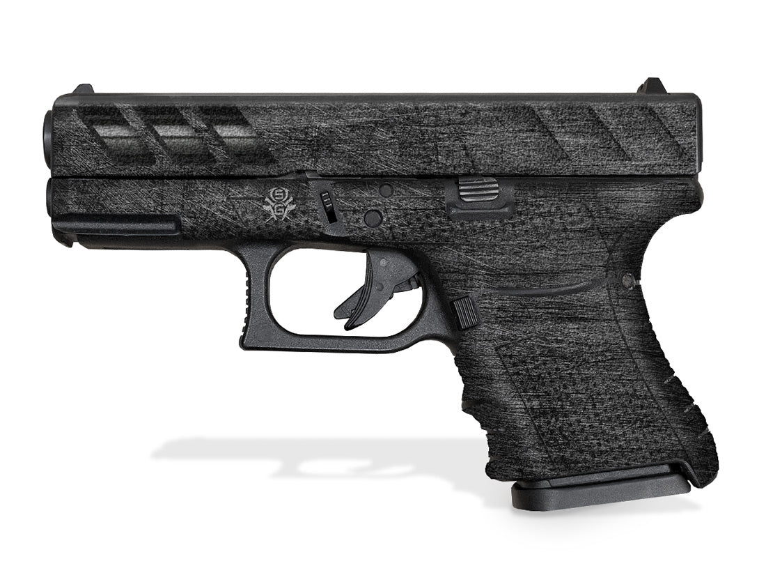 Showgun Decal Grip for Glock 30SF – Features an amazing rubber-like, textured grip surface to give you a better hold of the shorter frame of the G30 SF. Includes trim-to-fit decals to cover factory base plate, extended base plate or aftermarket magazine extension (not shown). SGX design.