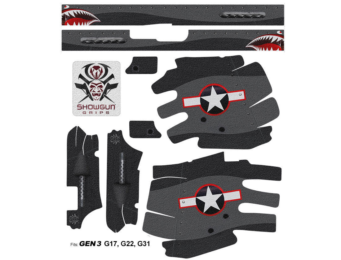 Decal Grip Kit for Gen 3 Glock 31 – Featuring War Machine design by Invision Artworks, a textured, rubber-like grip surface to give you a better grip and more control of your Glock. Cover just the frame of your G31 or add grip and style to your slide as well.