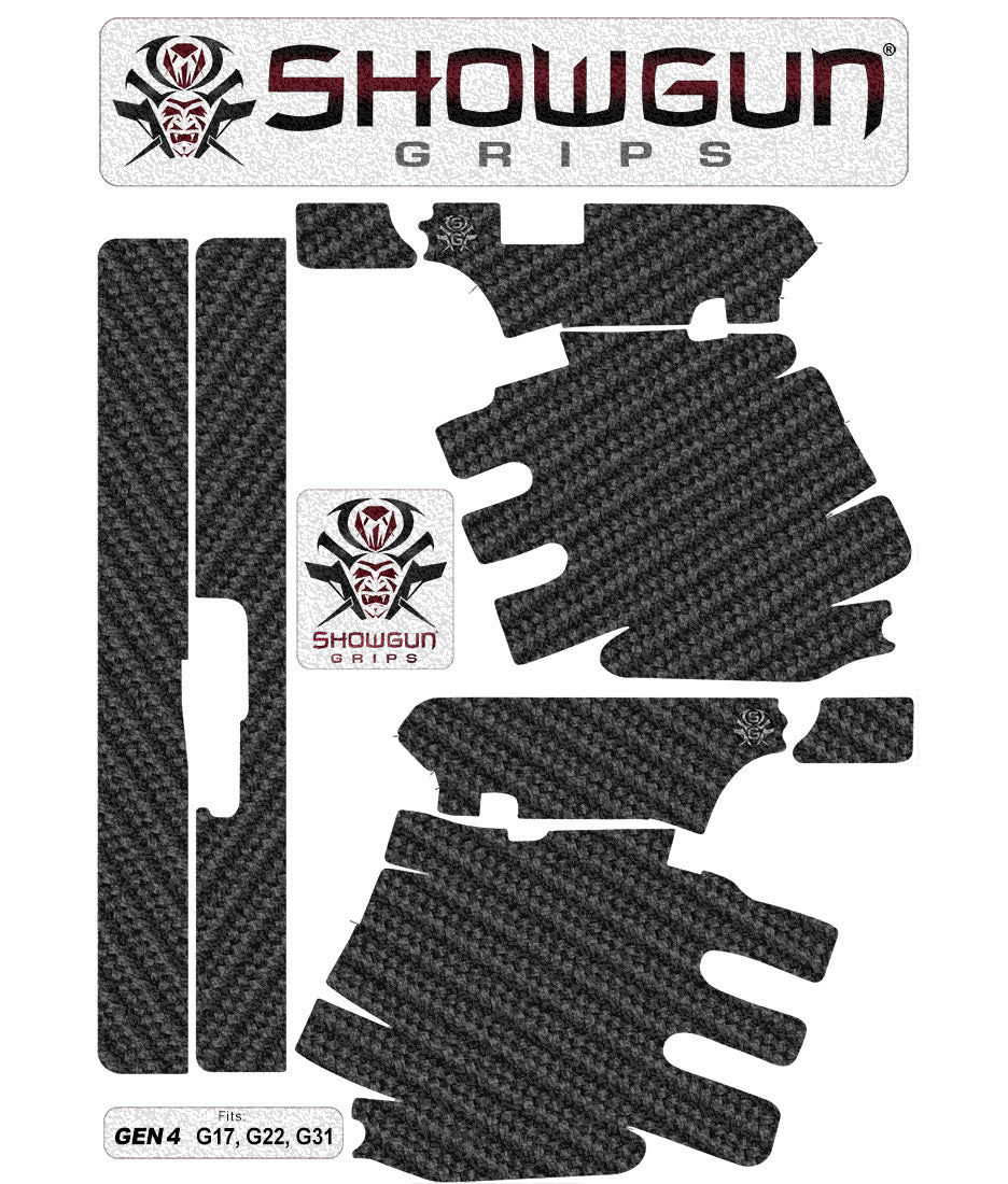 Decal Grip Kit for Glock 31 Gen 4 – Carbon Fiber design. Features a textured, rubber-like grip surface to give you a better grip and more control of your firearm. Cover just the frame or add grip and design to the slide of your G31 as well.