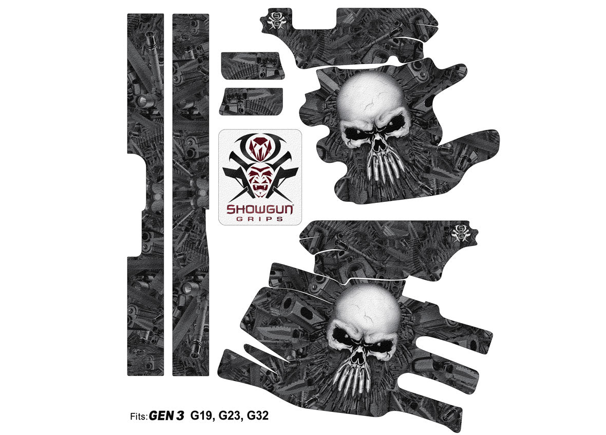 Decal Grip for Gen 3 Glock 32 – Arsenal design by Showgun Grips. Features a textured, rubber-like surface to give you a better grip and more control of your firearm. You can cover just the frame or add grip to the slide of your G32 as well.