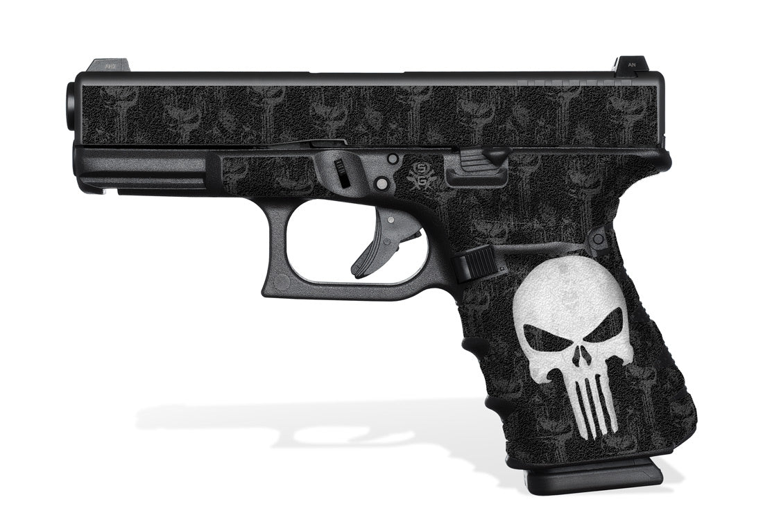 The Punisher Decal Grip Kit for Glock G32 – Features a textured, rubber-like grip surface to give you a better grip and more control of your firearm. Easy, do-it-yourself installation. Cover just the frame or add grip and design to the slide of your Gen 4 Glock 32 as well.