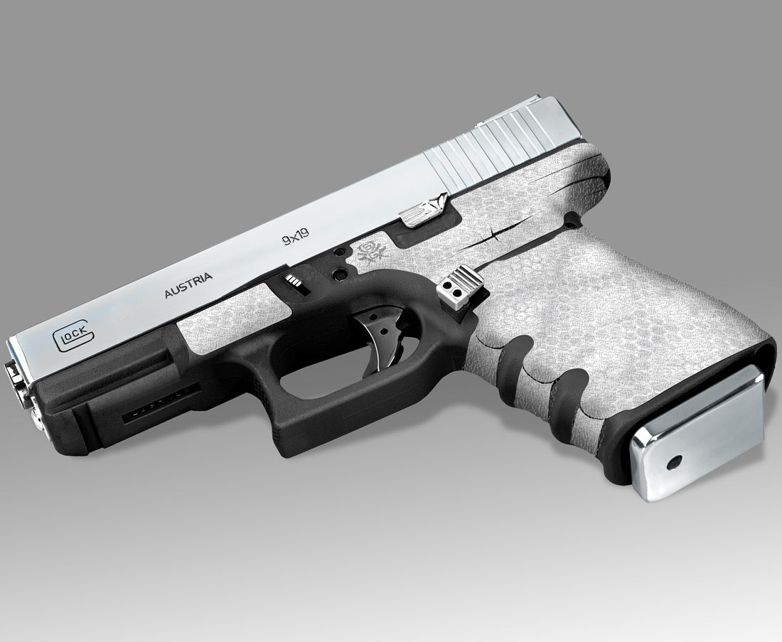 Decal Grip Kit for Glock Gen-3 G32 – Features a textured, rubber-like grip surface to give you a better grip and more control. Digital Snakeskin design by Invision Artworks. Cover just the frame or add grip and design to the slide of your Glock 32 as well.