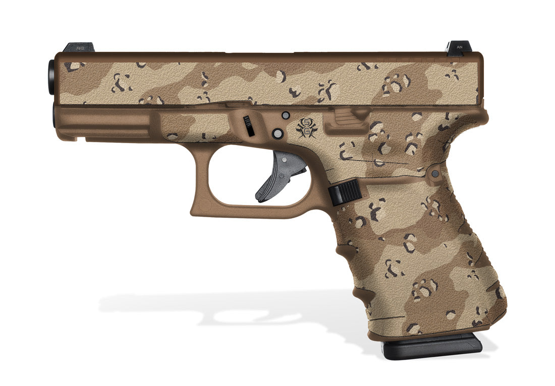 Desert Camo Decal Grip for Gen 4 Glock 32 – Features a textured, rubber-like surface to give you a better grip and more control of the firearm. Cover just the frame of your G32 or add grip to your slide also.