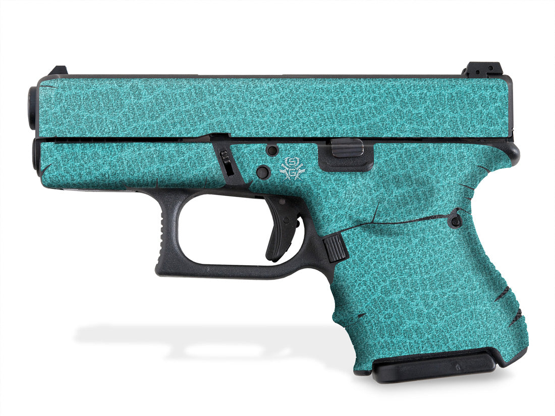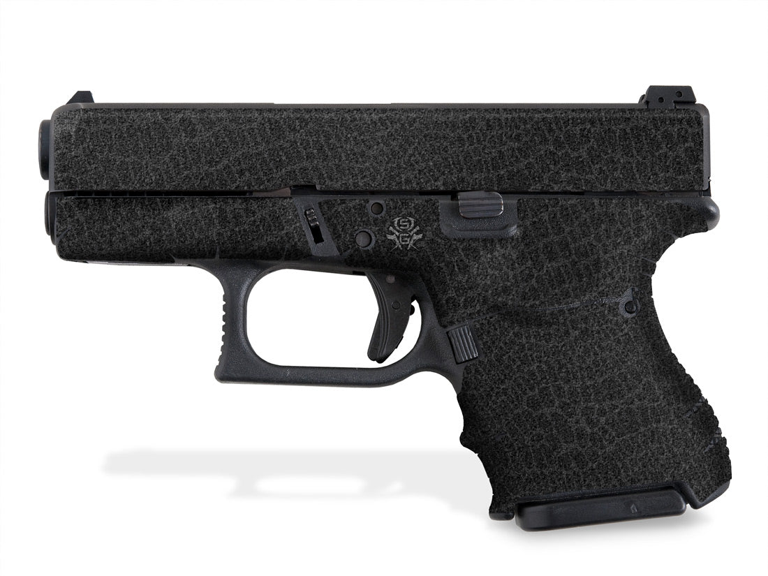 Decal Grip Kit for G33 Gen 3 or Gen 4 – Reptilian design. Provides a better grip on the short frame of the Glock 33, giving you more control. Features a textured, rubber-like grip surface. Cover just the frame or add grip the slide as well.