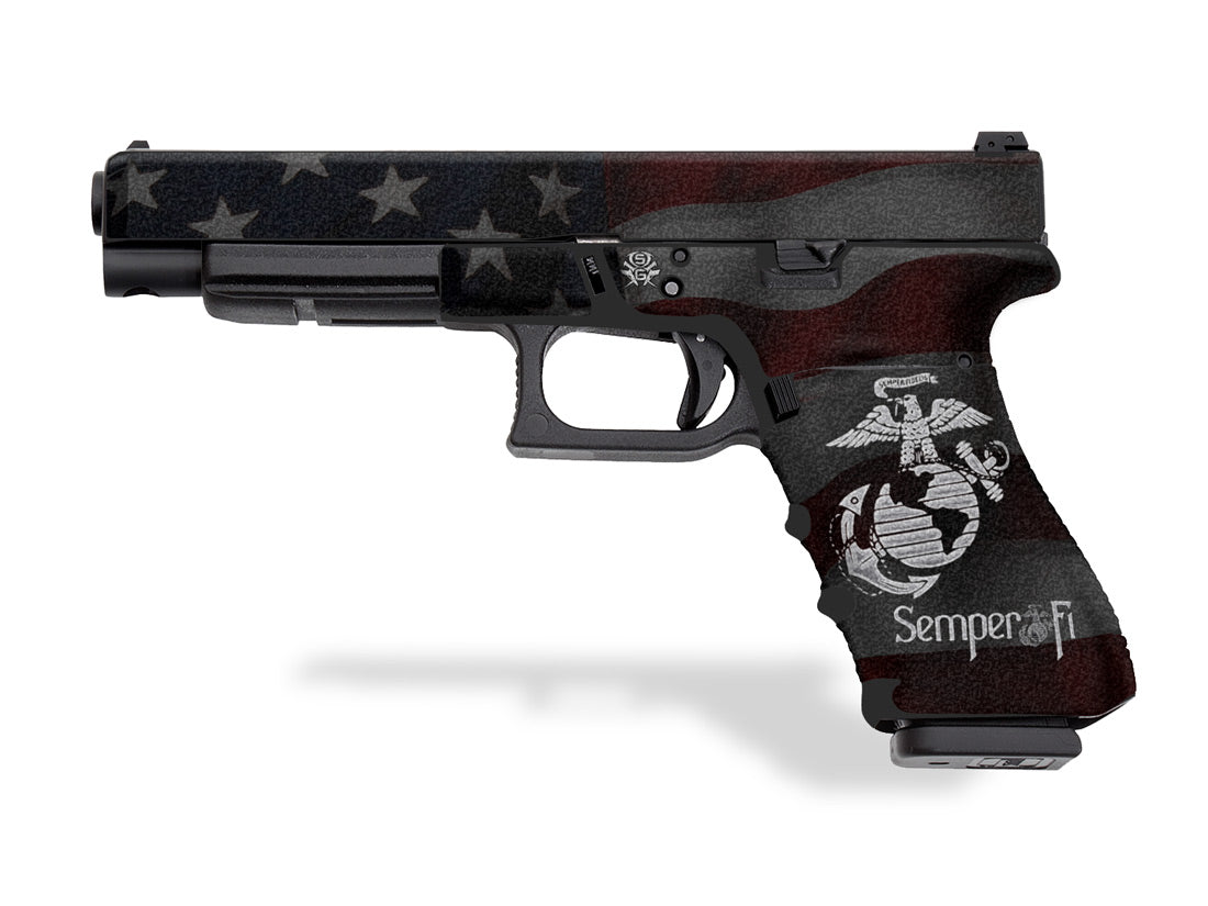 Semper Fi design. Features a textured, rubber-like grip surface. Cover just the frame or add grip the slide as well.