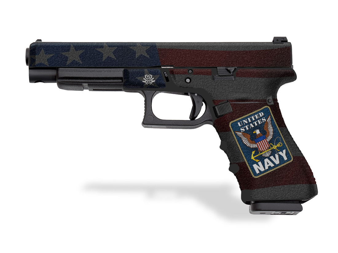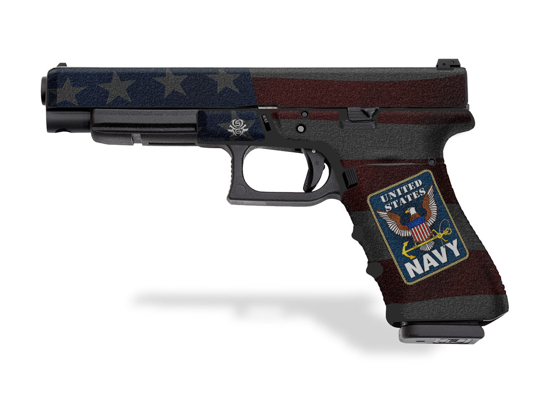 US Navy design. Features a textured, rubber-like grip surface. Cover just the frame or add grip the slide as well.