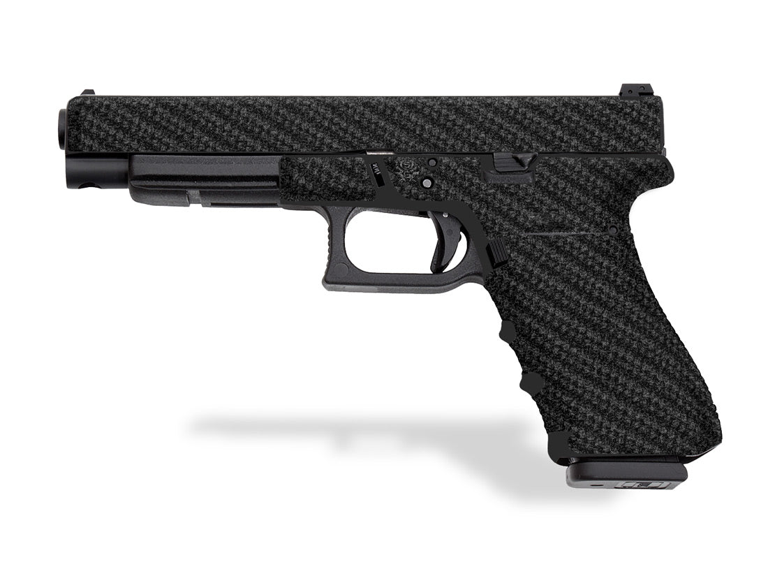 Glock 35 – Carbon Fiber design. Features a textured, rubber-like grip surface. Cover just the frame or add grip the slide as well.