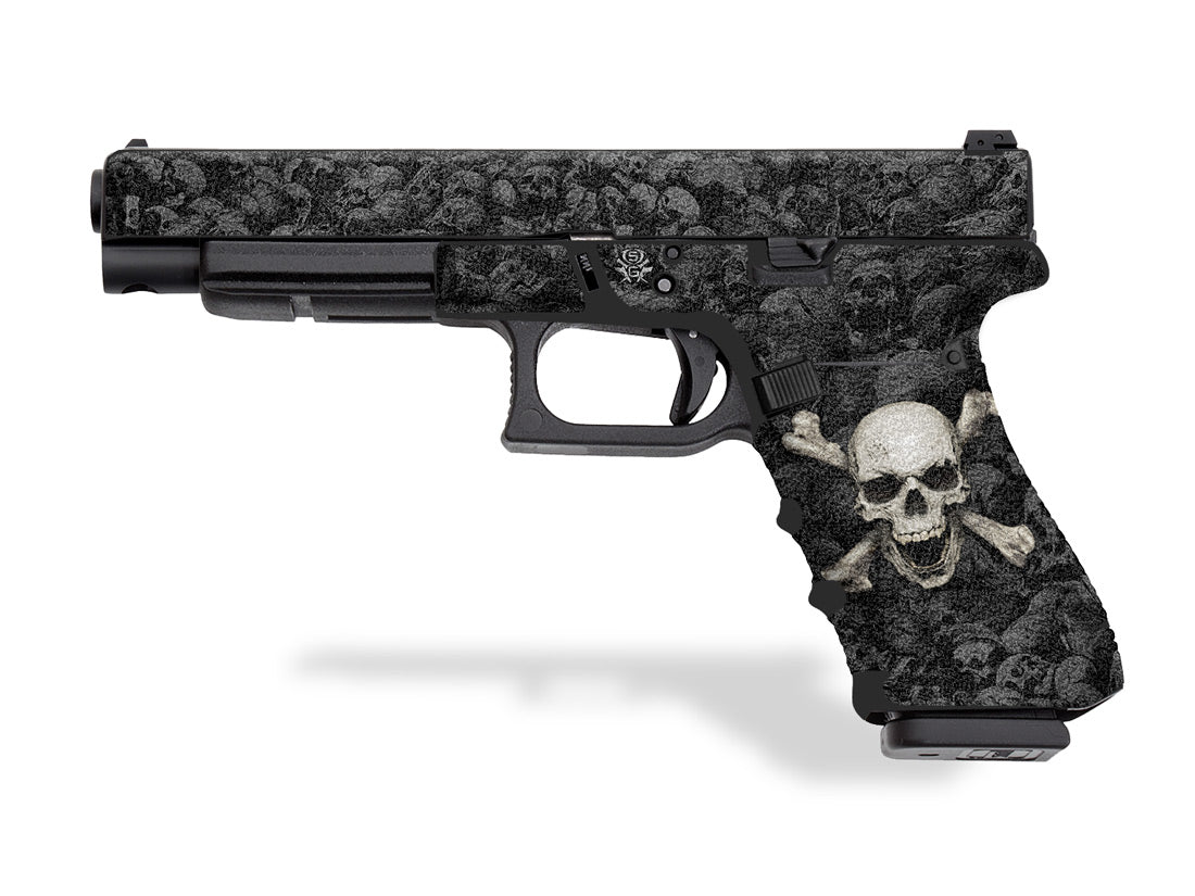 Skull & Crossbones design. Features a textured, rubber-like grip surface. Cover just the frame or add grip the slide as well.