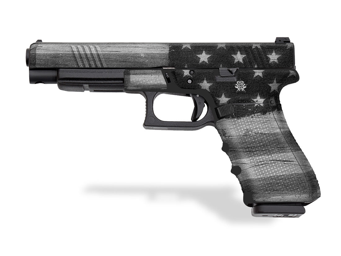 Subdued design. Features a textured, rubber-like grip surface. Cover just the frame or add grip the slide as well.