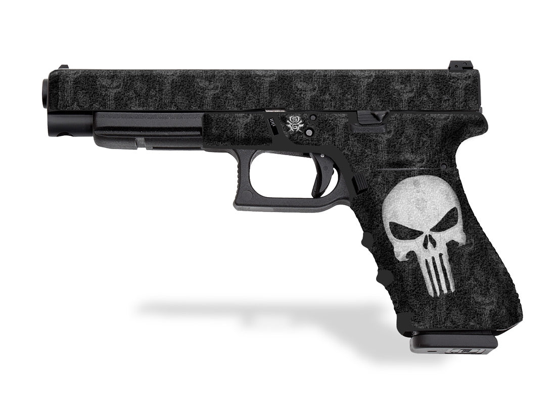 Decal Grip Kit for Glock 35 – Grim Reaper design. Features a textured, rubber-like grip surface. Cover just the frame or add grip the slide as well. Provides a better grip, giving you more control. Fits G35 Gen 3, Gen 4 and G35 MOS*.
