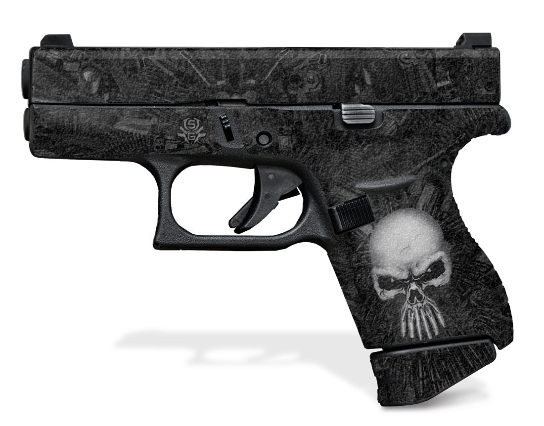 Showgun Decal Grip for Glock 42 – Features a slightly tacky, rubberized, textured grip surface to give you more control and better grip on the small frame of the G42. Includes trim-to-fit decals to cover factory base plate, extended base plate or aftermarket magazine extension. Arsenal design.