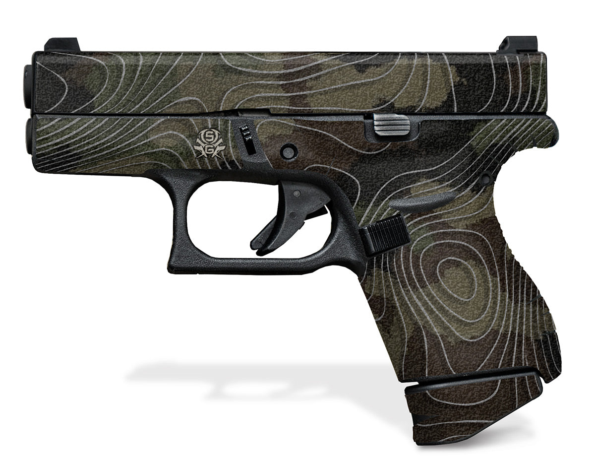 Showgun Decal Grip for Glock 42 – Features a slightly tacky, rubberized, textured grip surface to give you more control and better grip on the small frame of the G42. Includes trim-to-fit decals to cover factory base plate, extended base plate or aftermarket magazine extension. Topo Camo design.
