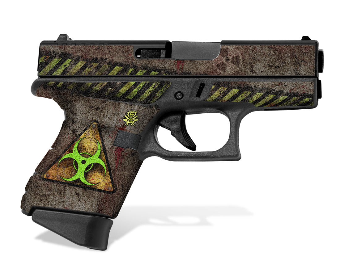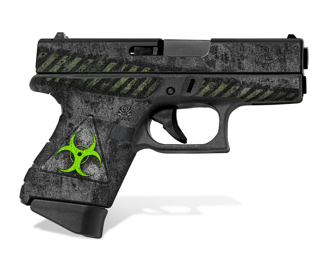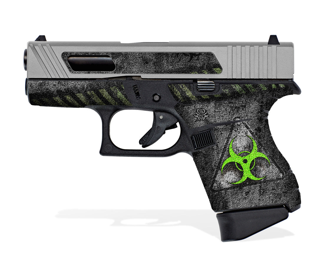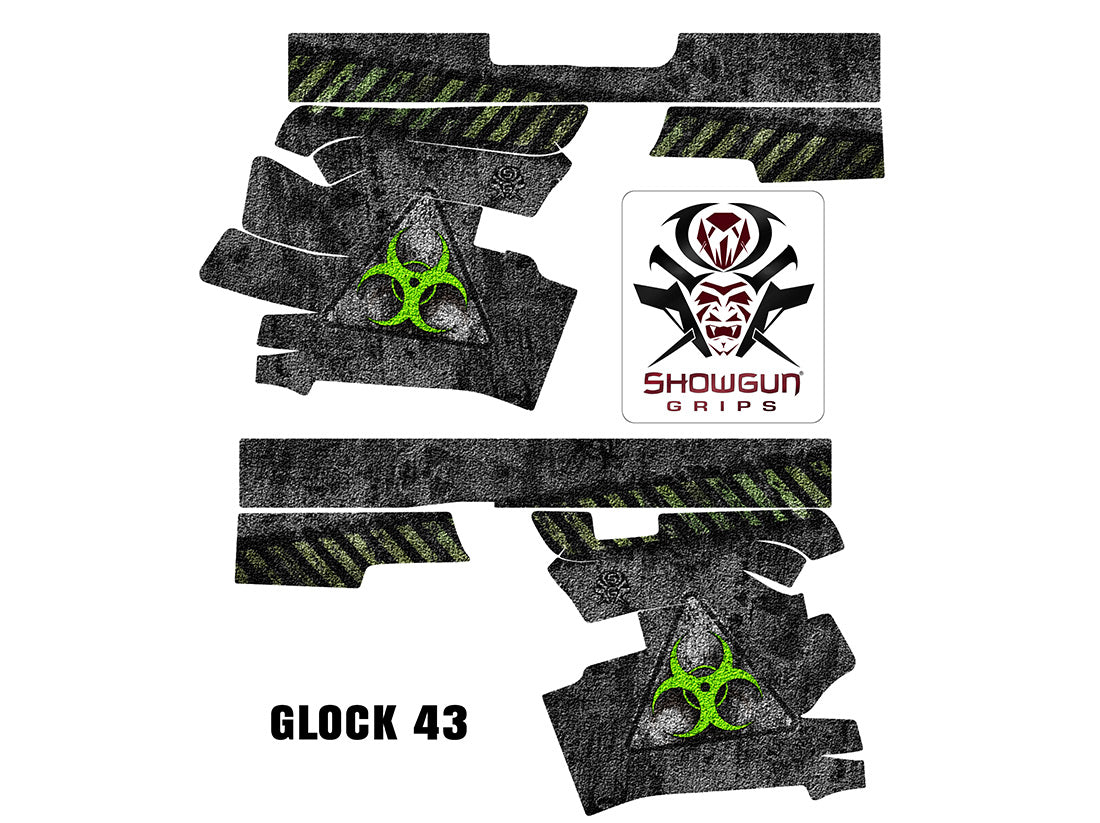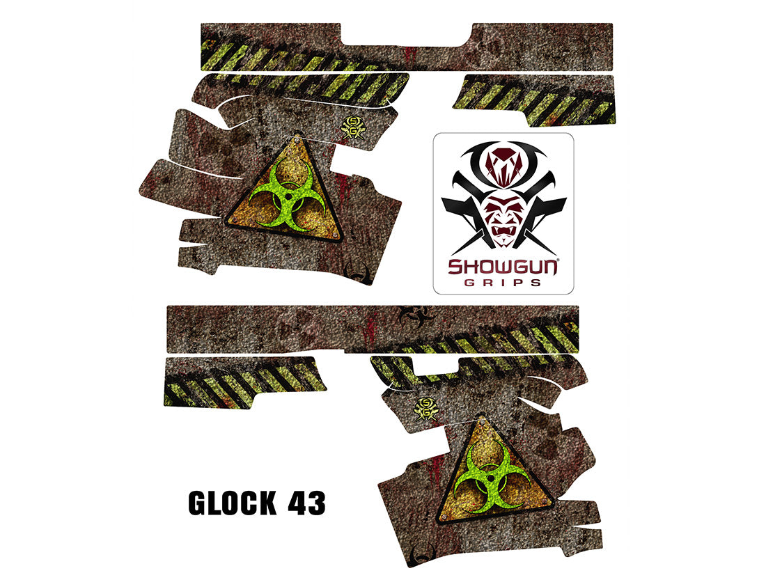 Decal Grip for Glock 43 – Biohazard – Features a textured, rubber-like surface to give you a better grip and more control of your firearm. Cover just the frame of your G43 or add grip to the slide as well.