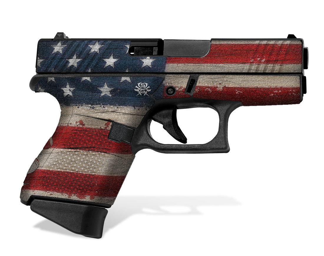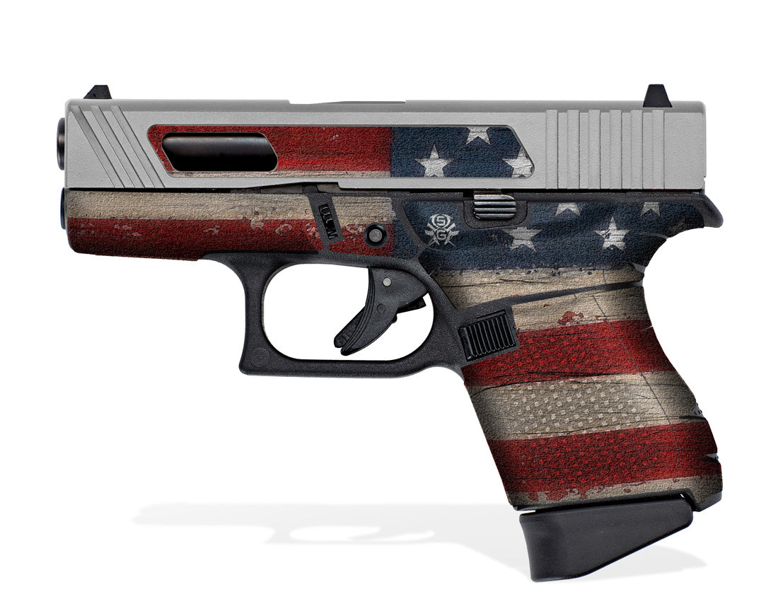 Decal Grip for G43 – Features a textured, rubber-like surface to give you a better grip and more control. Old Glory design. Cover just the frame of your Glock 43 or add grip to the slide as well.