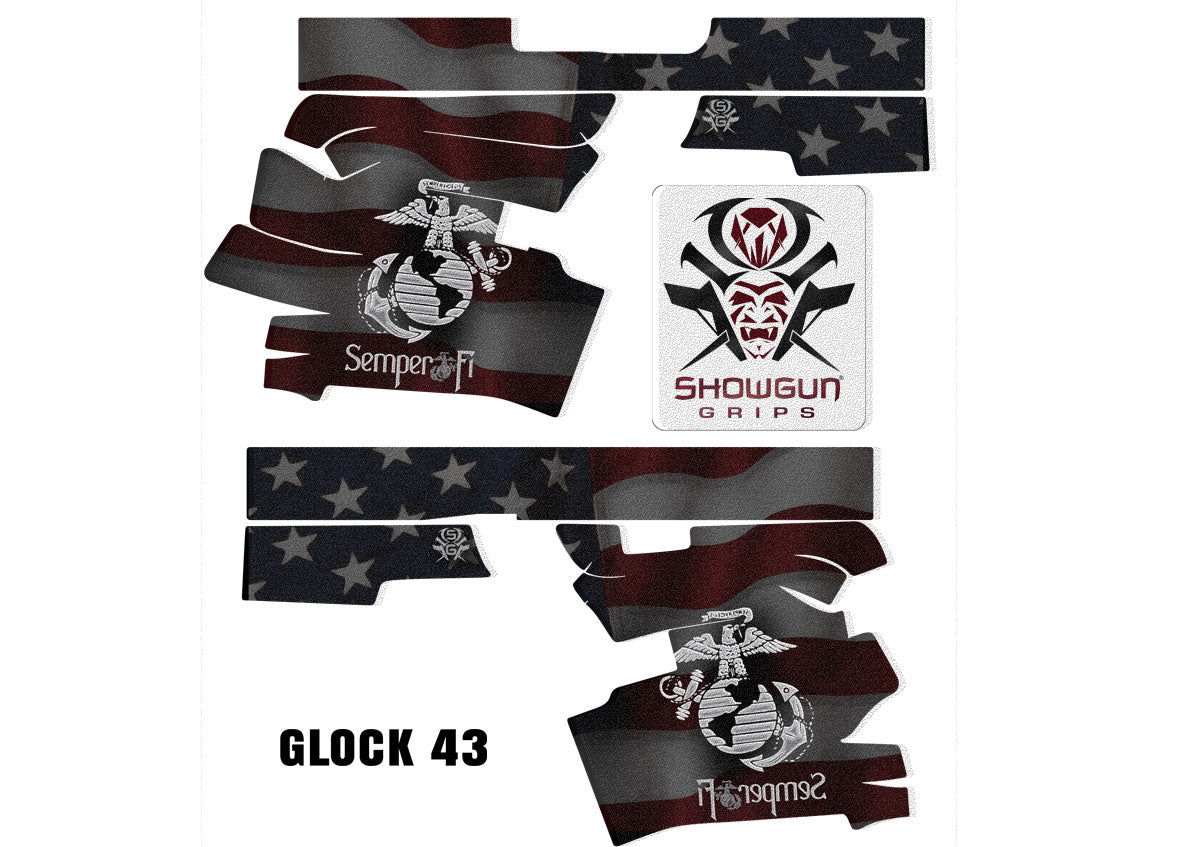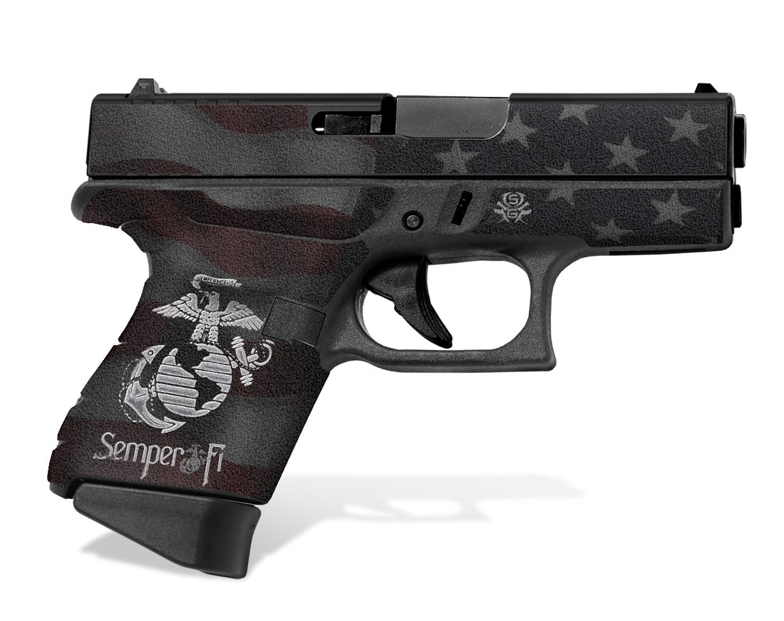 Decal Grip for Glock 43 – USMC Semper Fi – Features a textured, rubber-like surface to give you a better grip and more control of your firearm. Add grip to just the frame, or to the slide as well. Easy, do-it-yourself installation.