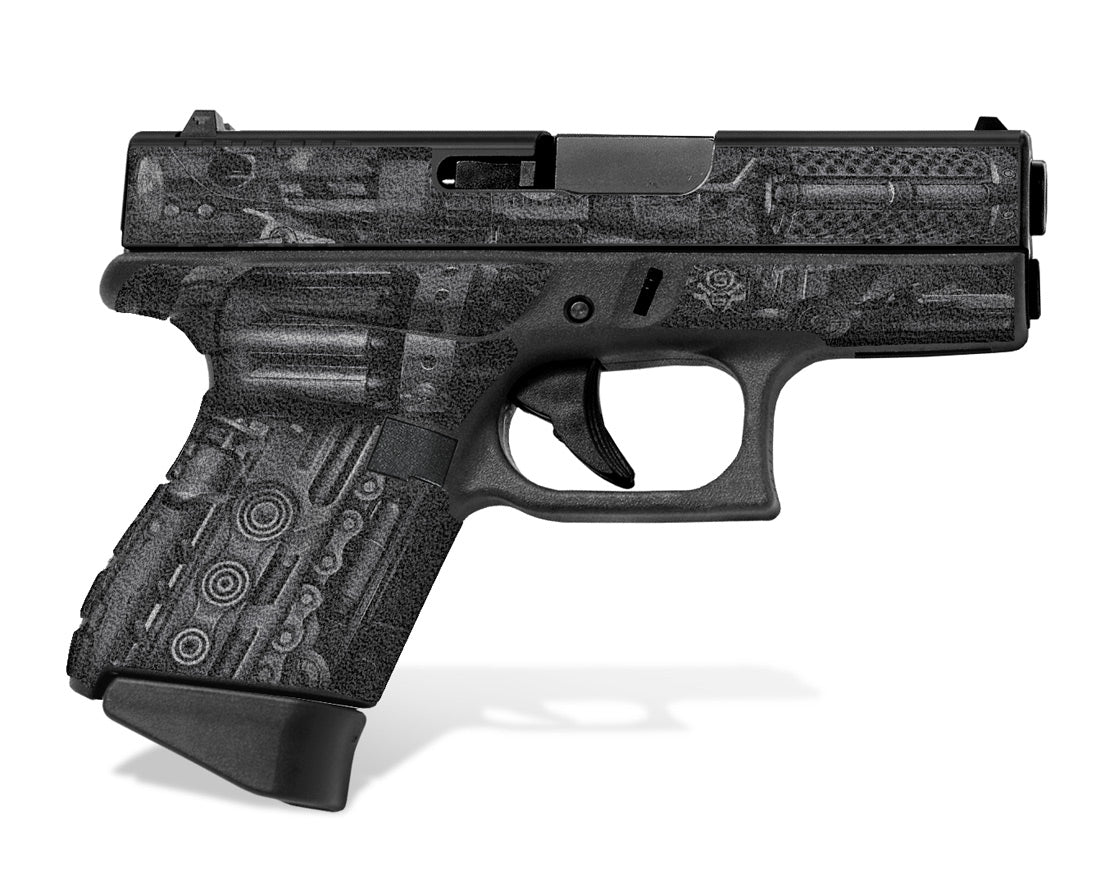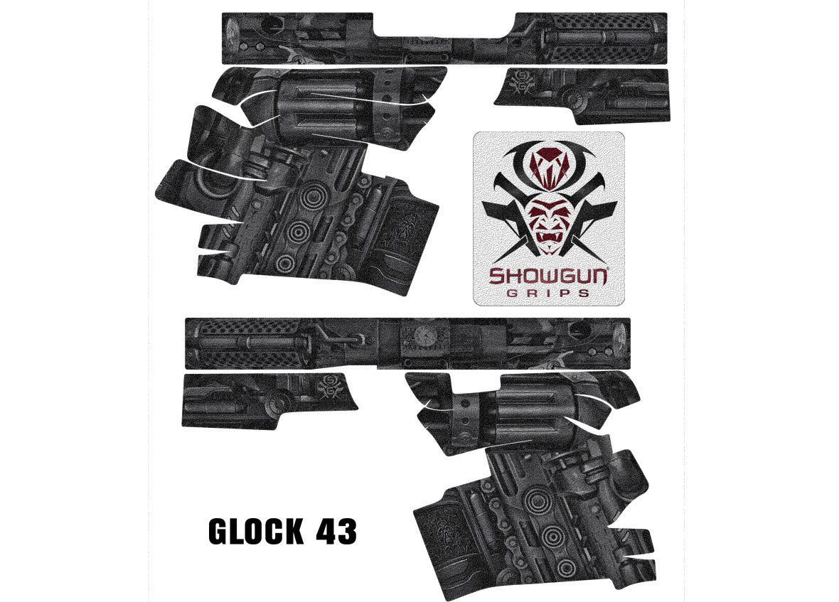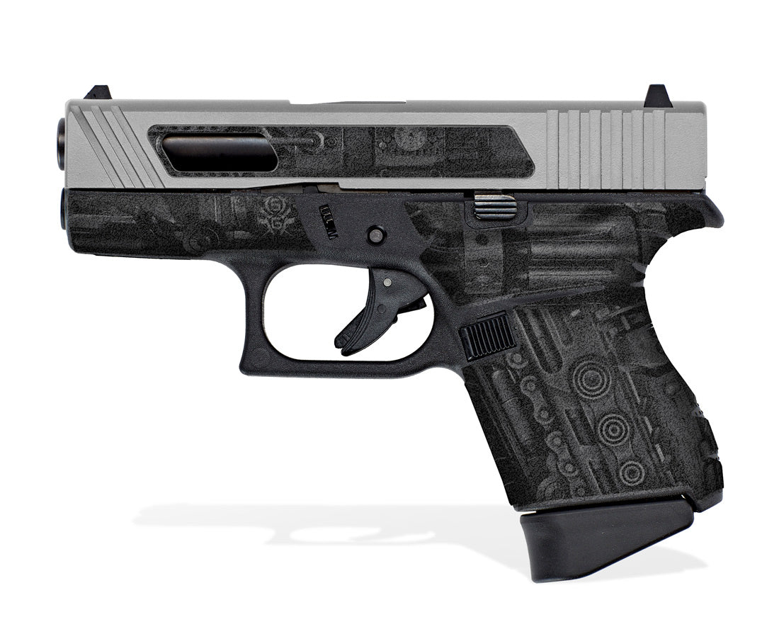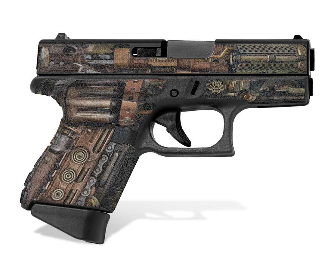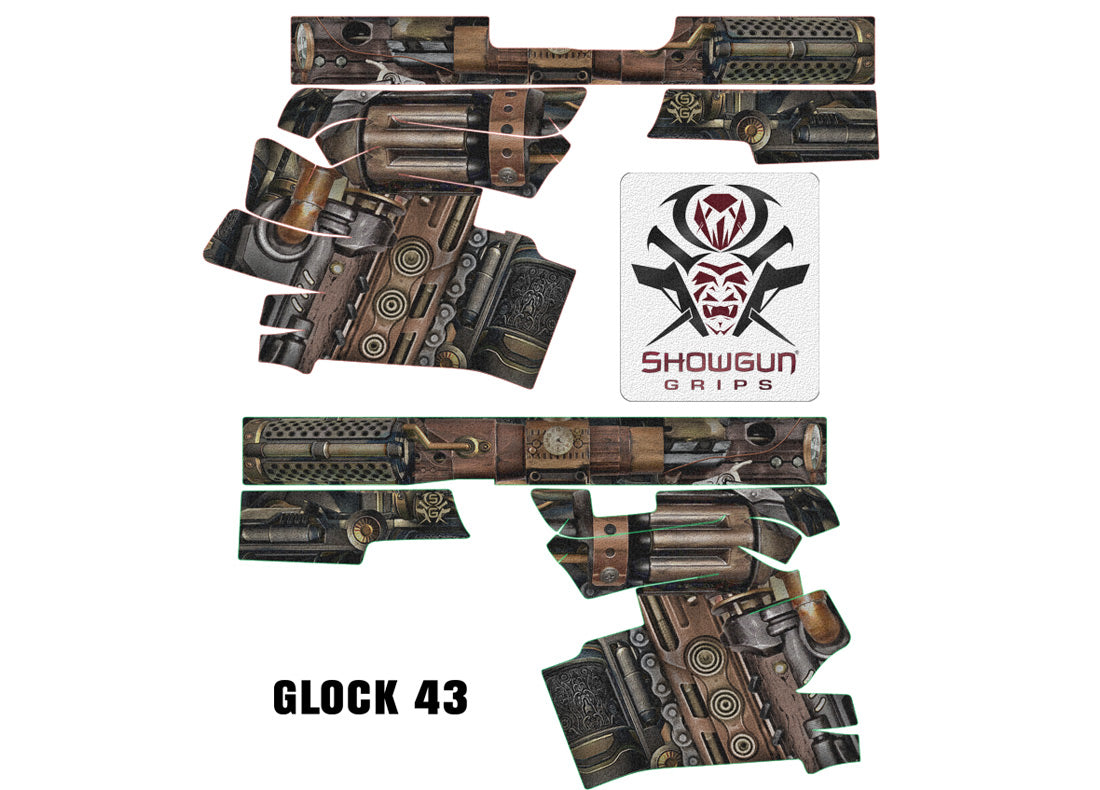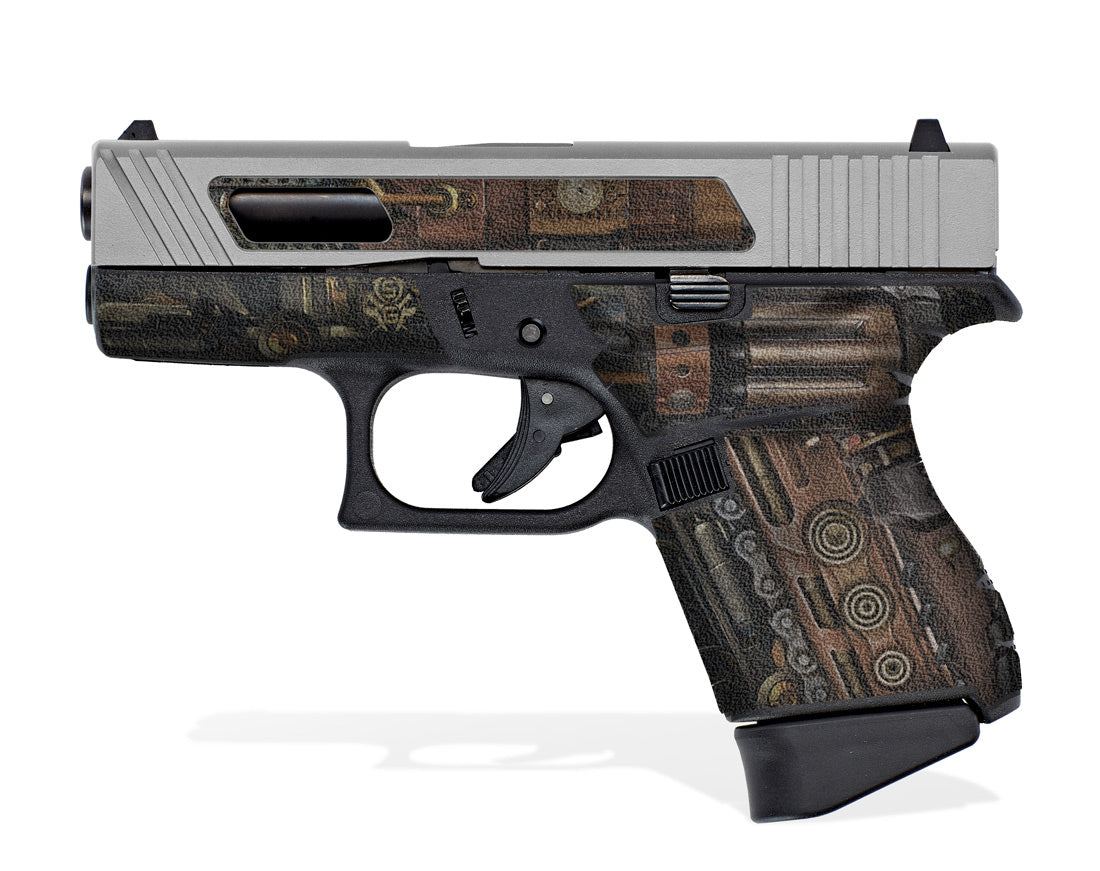 Decal Grip for Glock 43 – Steampunk – Features a textured, rubber-like surface to give you a better grip and more control of your firearm. Cover just the frame of your G43 or add grip to the slide as well.