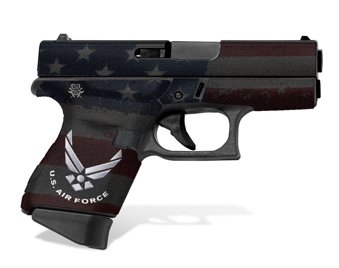 Decal Grip for Glock 43 – US Air Force. Features a textured, rubberized surface to give you a better grip and more control. Cover just the frame of your G43 or add grip and design to the slide as well. Easy, do-it-yourself installation.