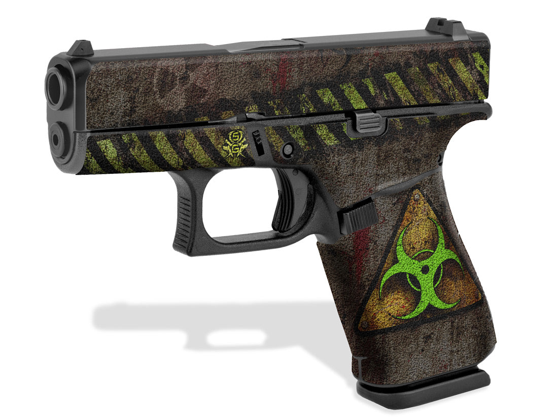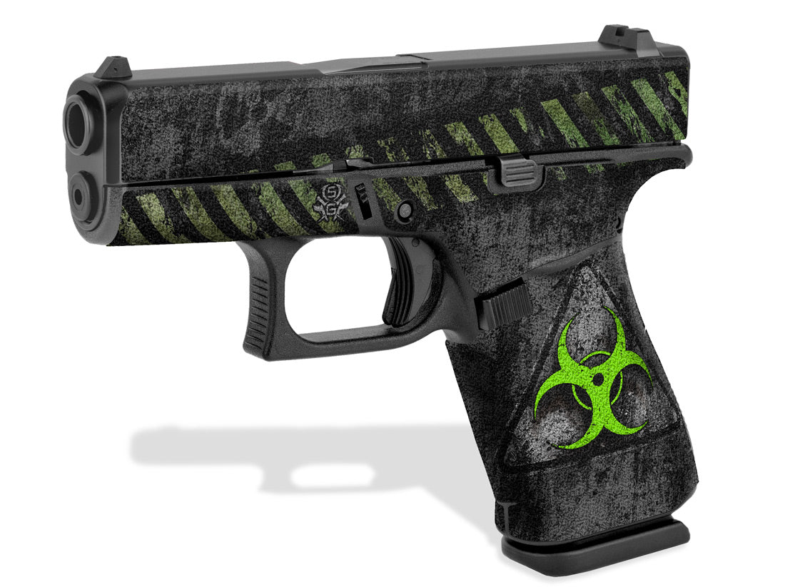 Decal Grip for Glock 43X – Biohazard – Features a textured, rubber-like surface to give you a better grip and more control of your firearm. Cover just the frame of your G43X or add grip to the slide as well.