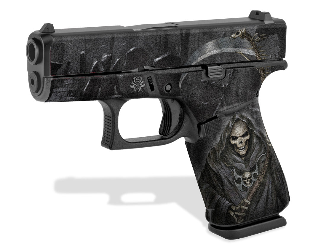 Decal Decal Grip Kit for Glock 43X – Grim Reaper. Features a textured, rubber-like surface to give you a better grip and more control of your firearm. Cover just the frame of your G43X or add grip and design to the slide as well. Easy, do-it-yourself installation.