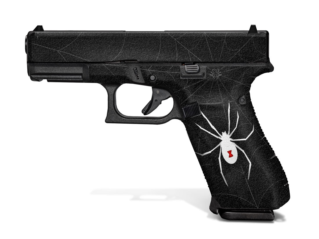 Decal Grip for Glock 45 – Black Widow design. This tactical decal grip will not only give your Glock a cool look, but with an amazing rubber-like feel, you’ll get a better and more comfortable hold of your G45. Cover just the frame or slide as well.
