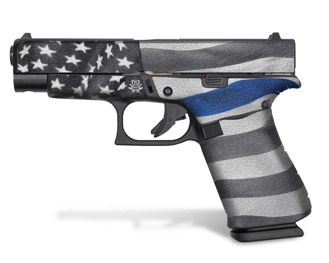 Decal Grip for Glock 48 – Thin Blue Line design. Support Our Law Enforcement Officers! Features a textured, rubber-like surface to give you a better grip and more control of your firearm. Cover just the frame of your G48 or add grip and design to the slide as well. Easy, do-it-yourself installation.