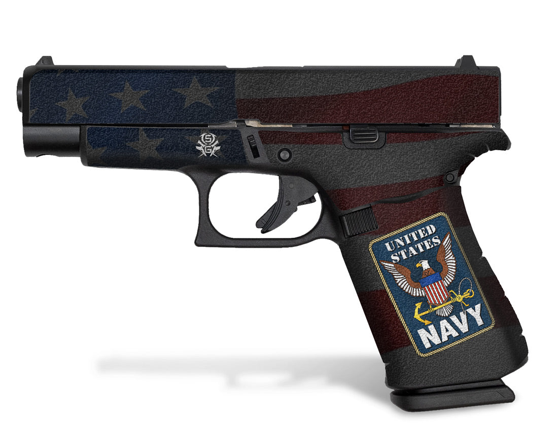 US Navy Decal Grip for Glock 48 – Features a textured, rubber-like surface to give you a better grip and more control of your firearm. Cover just the frame of your G48 or add grip and design to the slide as well. Easy, do-it-yourself installation. Carbon Fiber design.