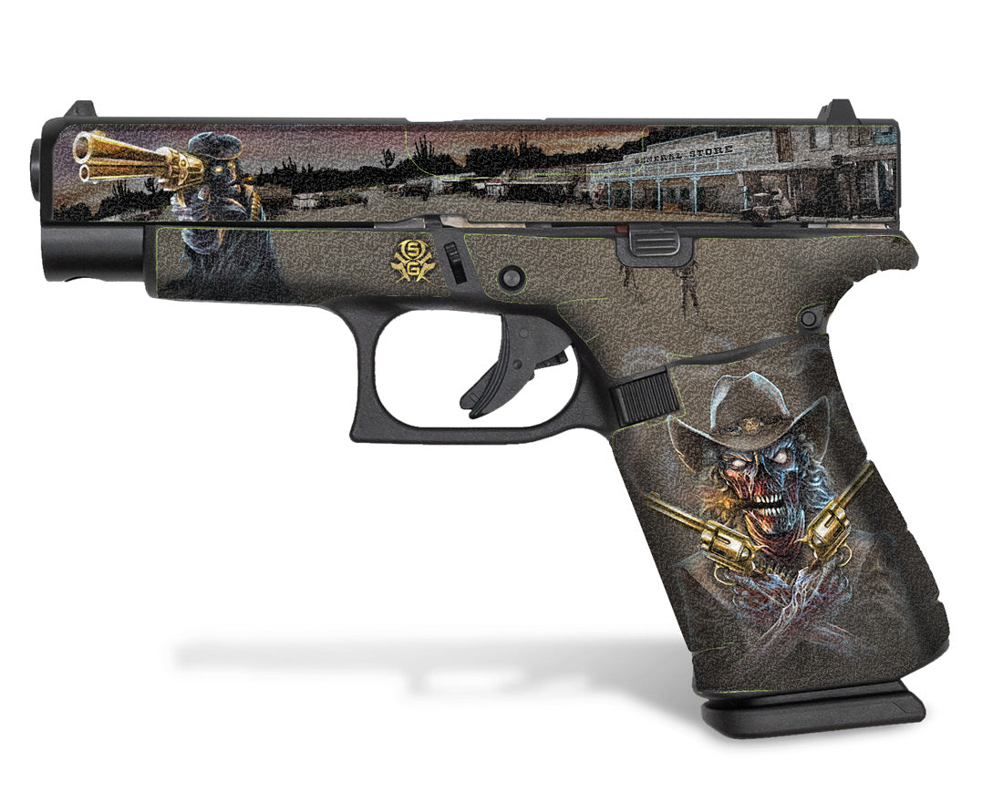 Decal Grip Kit for Glock 48 – Features a textured, rubber-like surface to give you a better grip and more control of your firearm. Cover just the frame of your G48 or add grip and design to the slide as well. Easy, do-it-yourself installation. Zombie Outlaw design by Invision Artworks.