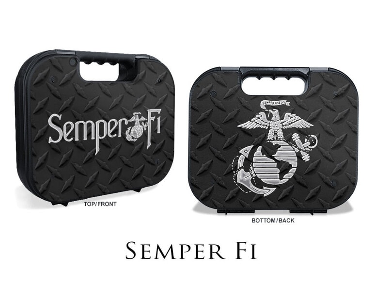 Graphics for your factory Glock case! USMC Semper Fi design. Put a custom look on your Glock case while protecting from scratches. Manufactured with specially formulated adhesive and a thick, UV protected, scratch resistant over-laminate designed to withstand harsh conditions. Easy do-it-yourself installation.