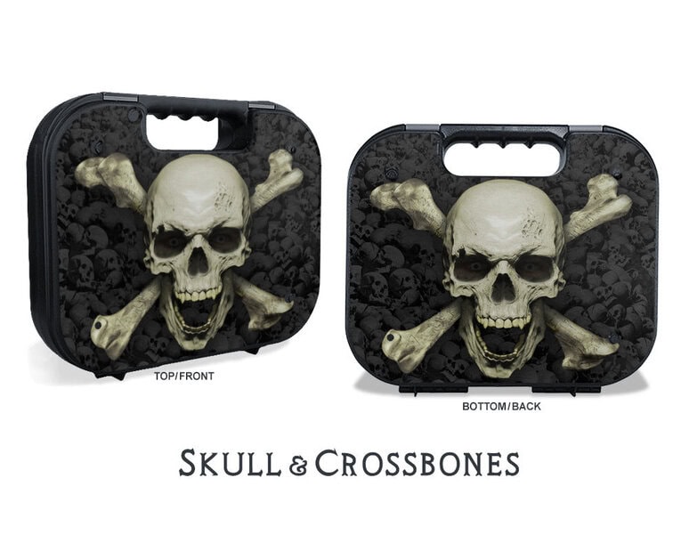 Graphics for your factory Glock case! Skull & Crossbones design by Invision Artworks. Put a custom look on your Glock case while protecting from scratches. Manufactured with specially formulated adhesive and a thick, UV protected, scratch resistant over-laminate designed to withstand harsh conditions. Easy do-it-yourself installation.