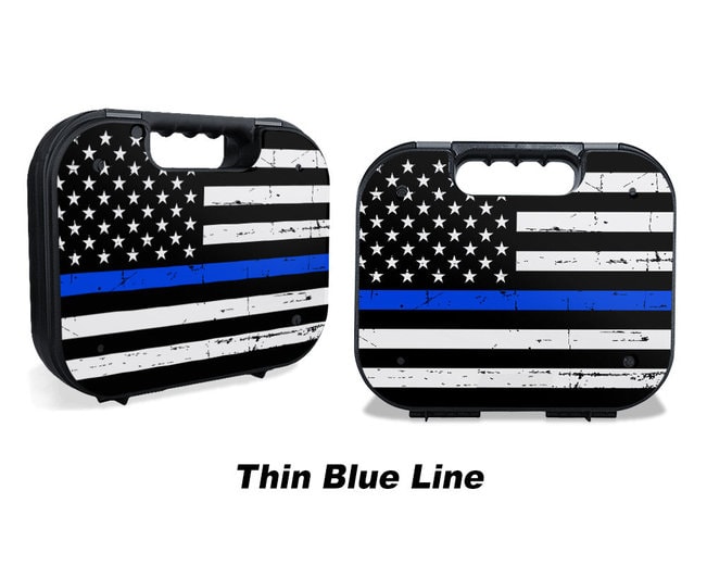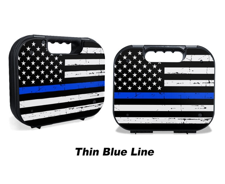 Graphics for your factory Glock case – Thin Blue Line design – Support your local Law Enforcement Officers! Put a custom look on your Glock case while protecting from scratches. Manufactured with specially formulated adhesive and a thick, UV protected, scratch resistant over-laminate designed to withstand harsh conditions. Easy do-it-yourself installation.