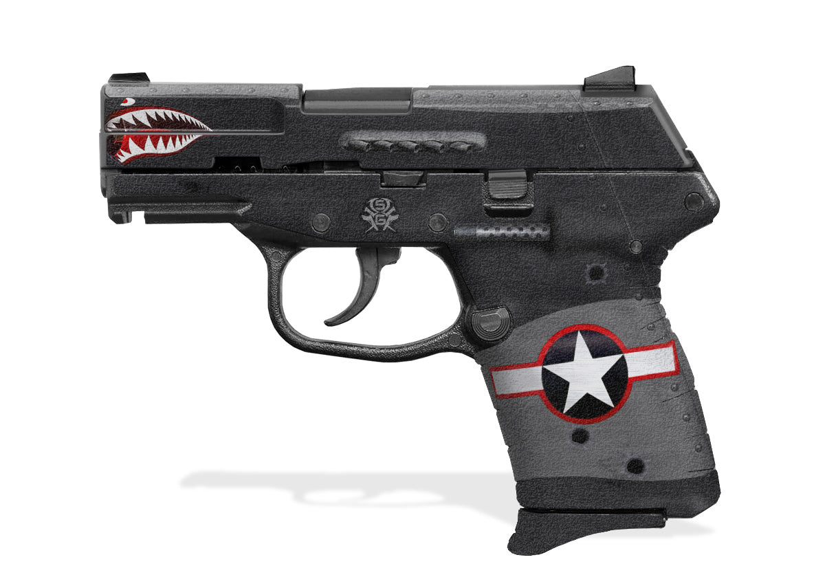Decal Grip for KelTec PF9 – Our decal grips are manufactured with a rubberized, textured vinyl, and specially formulated 3M adhesive, that molds into textured surfaces and stays on through harsh environments and conditions when installed properly. Cover just the frame of your PF9 or apply it to the slide as well. The rubber-like feel is non-slip and won’t chaff or irritate your skin. War Machine design.