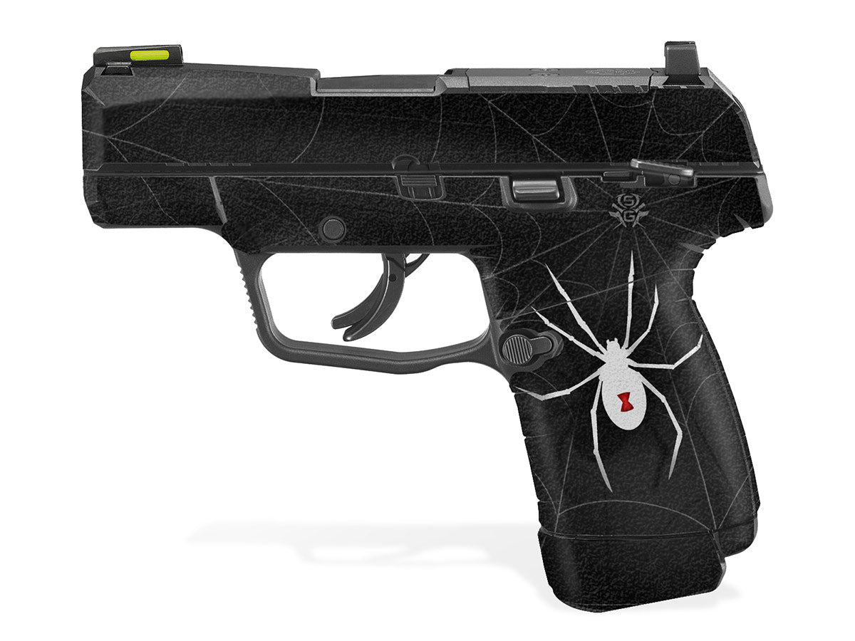 Decal Grip for Ruger Max-9 – Showgun decal grips are manufactured with a rubberized, textured vinyl and specially formulated 3M adhesive, that molds into textured surfaces and stays on through harsh environments and conditions. Cover just the frame of your Ruger Max9 or apply it to the slide as well. The rubber-like feel is not only non-slip, but it won’t chaff or irritate your skin. Black Widow design.