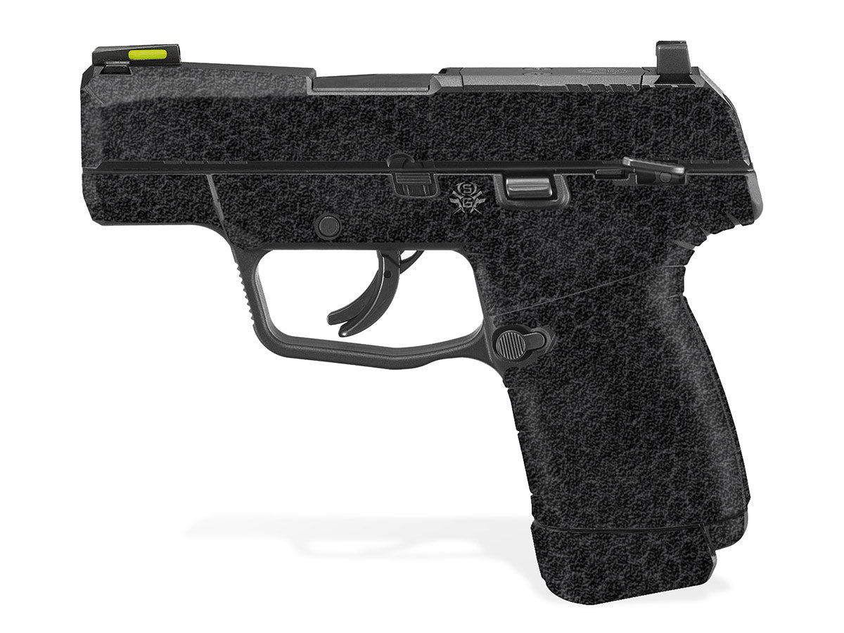 Decal Grip for Ruger Max-9 – Showgun decal grips are manufactured with a rubberized, textured vinyl and specially formulated 3M adhesive, that molds into textured surfaces and stays on through harsh environments and conditions. Cover just the frame of your Ruger Max9 or apply it to the slide as well. The rubber-like feel is not only non-slip, but it won’t chaff or irritate your skin. Digital Snakeskin design.
