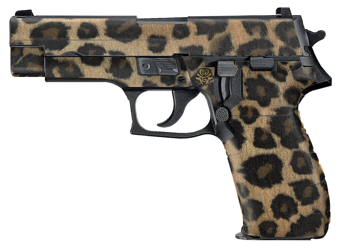 Sig P226 Decal Grip – Manufactured with a rubber-like, textured, non-slip vinyl that gives you a firm secure grip and won’t chaff or irritate your skin. Made with 3M adhesive specially formulated to mold into textured surfaces and stay on through harsh conditions. Leopard Print design.