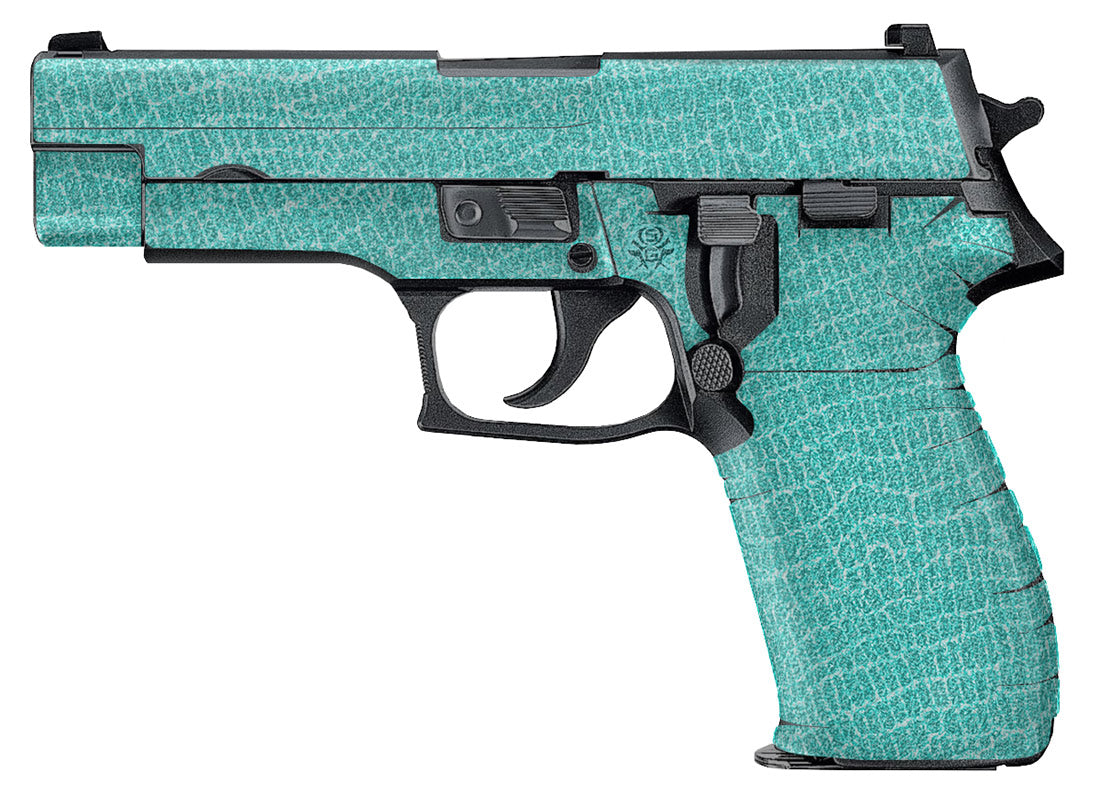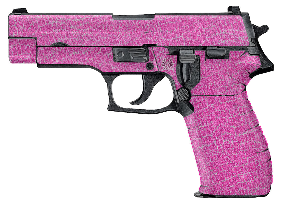 Sig P226 Decal Grip – Manufactured with a rubber-like, textured, non-slip vinyl that gives you a firm secure grip and won’t chaff or irritate your skin. Made with 3M adhesive specially formulated to mold into textured surfaces and stay on through harsh conditions. Reptilian design.