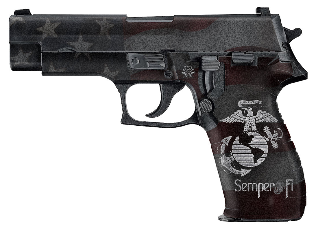 Sig P226 Decal Grip – Manufactured with a rubber-like, textured, non-slip vinyl that gives you a firm secure grip and won’t chaff or irritate your skin. Made with 3M adhesive specially formulated to mold into textured surfaces and stay on through harsh conditions. Semper Fi design.