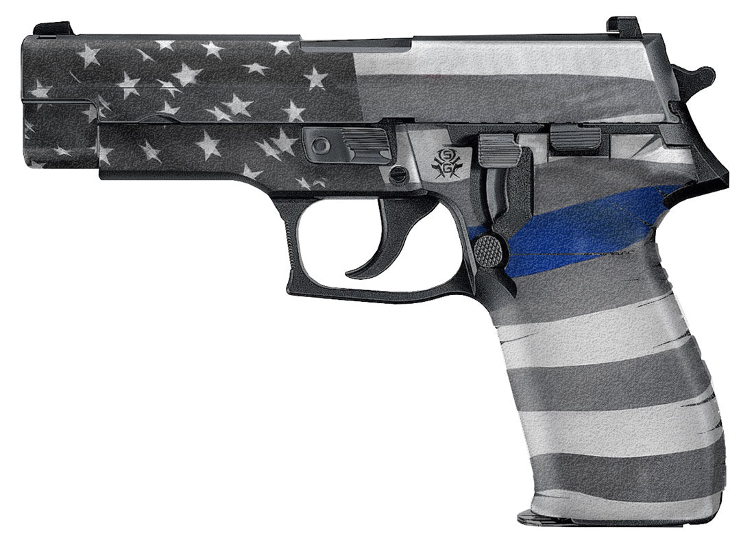 Sig P226 Decal Grip – Manufactured with a rubber-like, textured, non-slip vinyl that gives you a firm secure grip and won’t chaff or irritate your skin. Made with 3M adhesive specially formulated to mold into textured surfaces and stay on through harsh conditions. Thin Blue Line design.