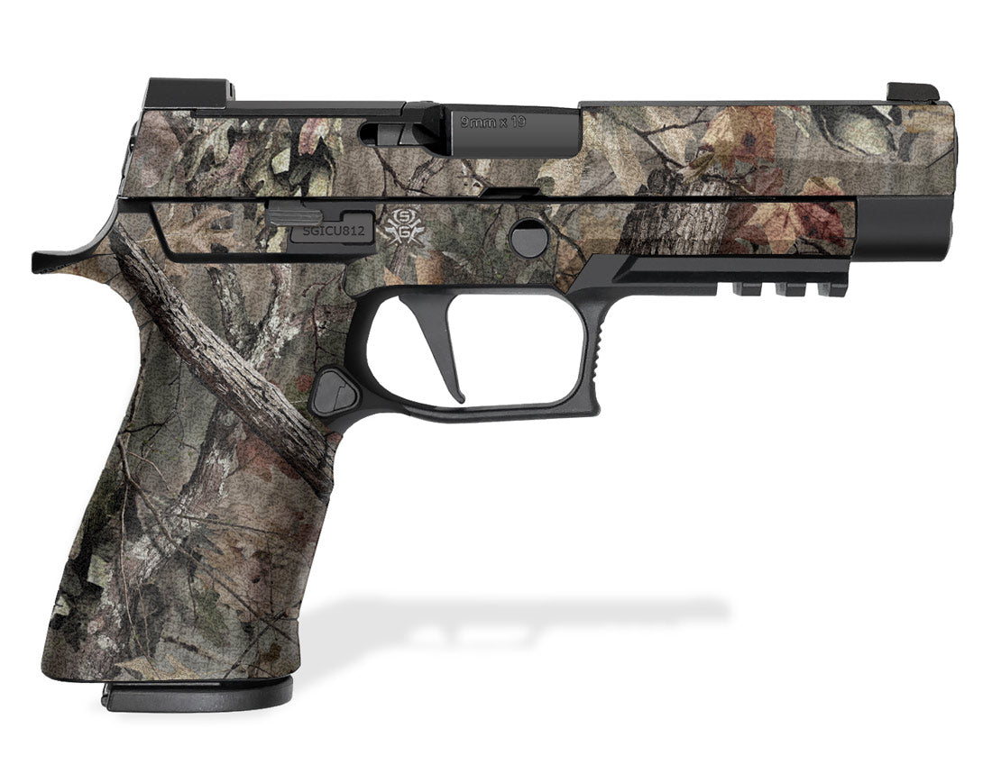 Decal Grip for Sig Sauer P320 X-Full, P320 X-VTAC and P320 RXP XFull-Size models. Features a rubberized, textured grip surface for better grip. Cover just the frame or apply it to the slide as well. Broken Oak Camo design.