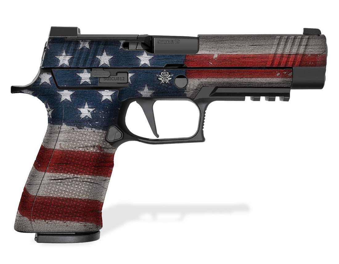 Decal Grip for Sig Sauer P320 X-Full, P320 X-VTAC or P320 RXP XFull-Size models. Features an amazing rubber-like, textured grip surface, for better grip and more control. Old Glory design.
