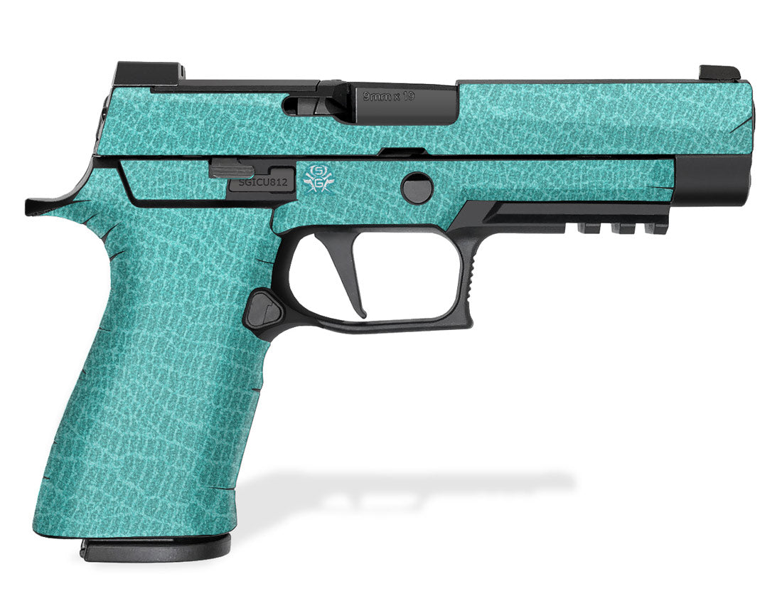 Decal Grip for Sig Sauer P320 X-Full, P320 X-VTAC and P320 RXP XFull-Size models. Features a rubberized, textured grip surface for better grip. Cover just the frame or apply it to the slide as well. Reptilian design.
