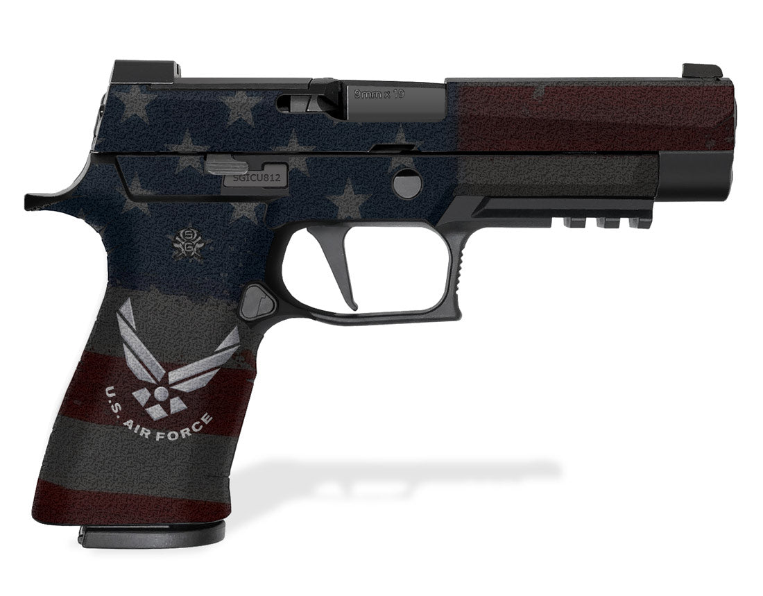 Decal Grip for Sig Sauer P320 X-Full, P320 X-VTAC and P320 RXP XFull-Size models. Features a rubberized, textured grip surface for better grip. Cover just the frame or apply it to the slide as well. US Air Force design.