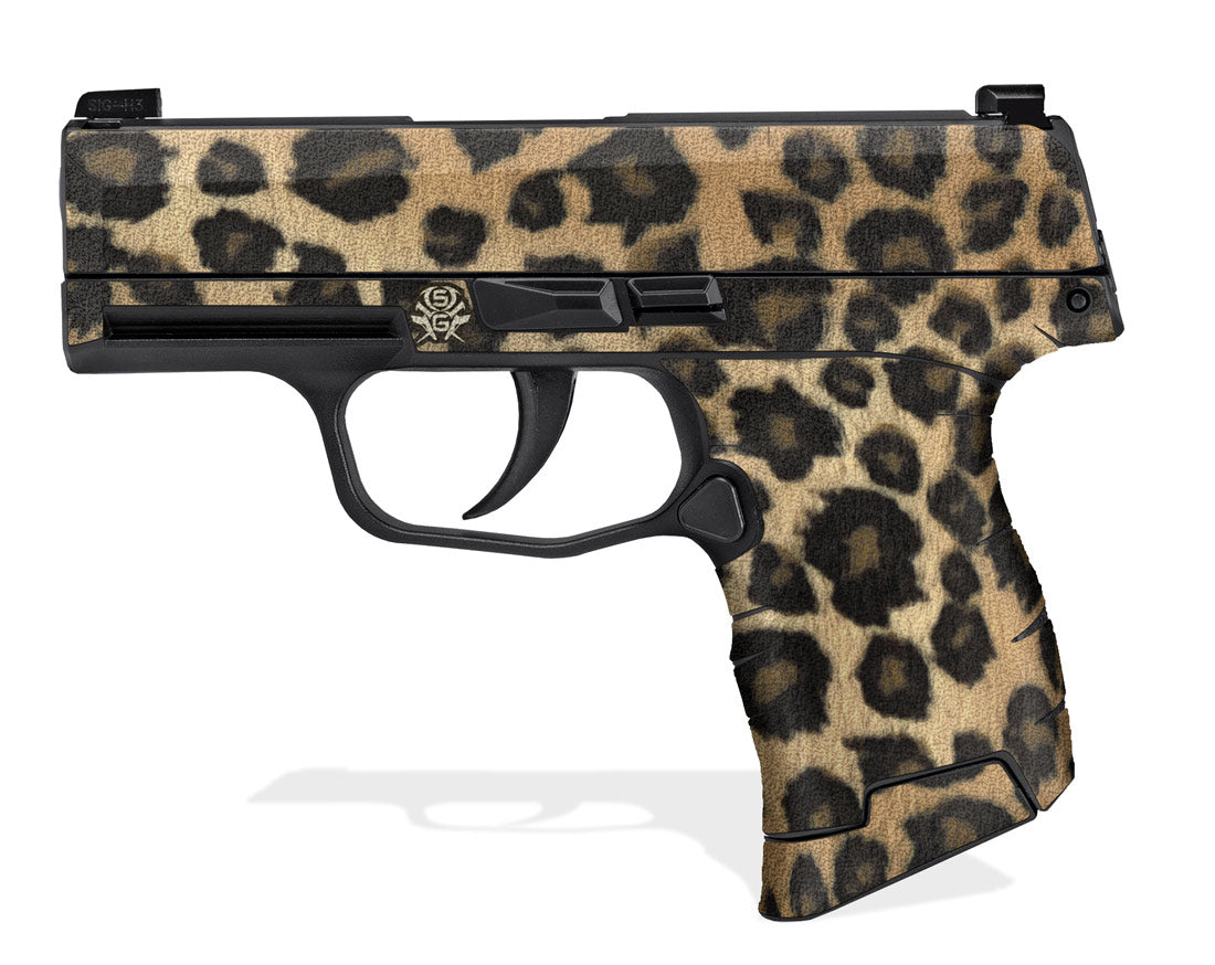 Decal Grip for Sig Sauer P365 Micro-Compact. Features a tactical, rubber-like, textured grip surface that gives you a better, more comfortable hold of the P365. Leopard Print design.