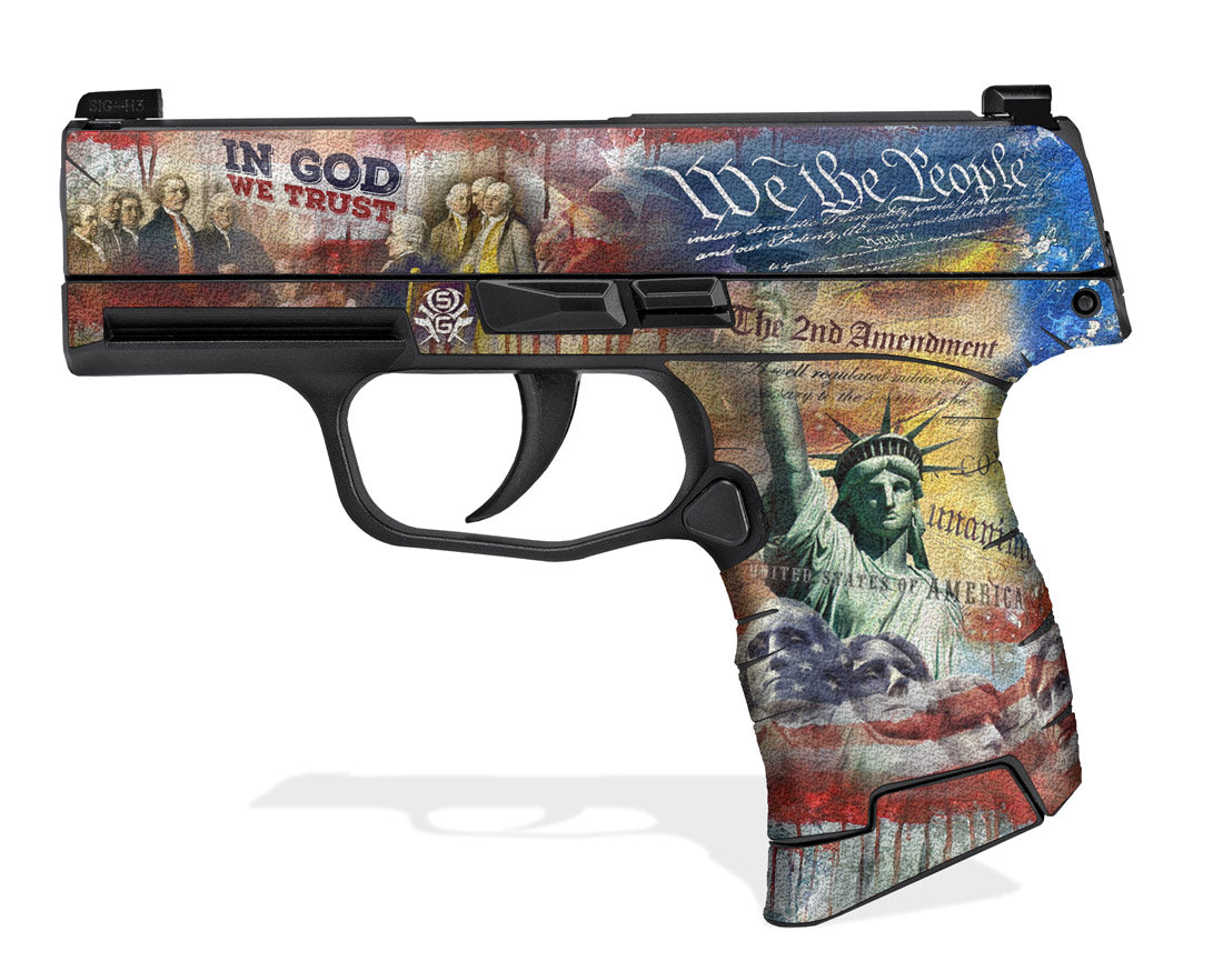 Decal Grip for Sig Sauer P365 Micro-Compact. Features a tactical, rubberized, textured grip surface that gives you a better, more comfortable hold of the Sig P365. We The People design.