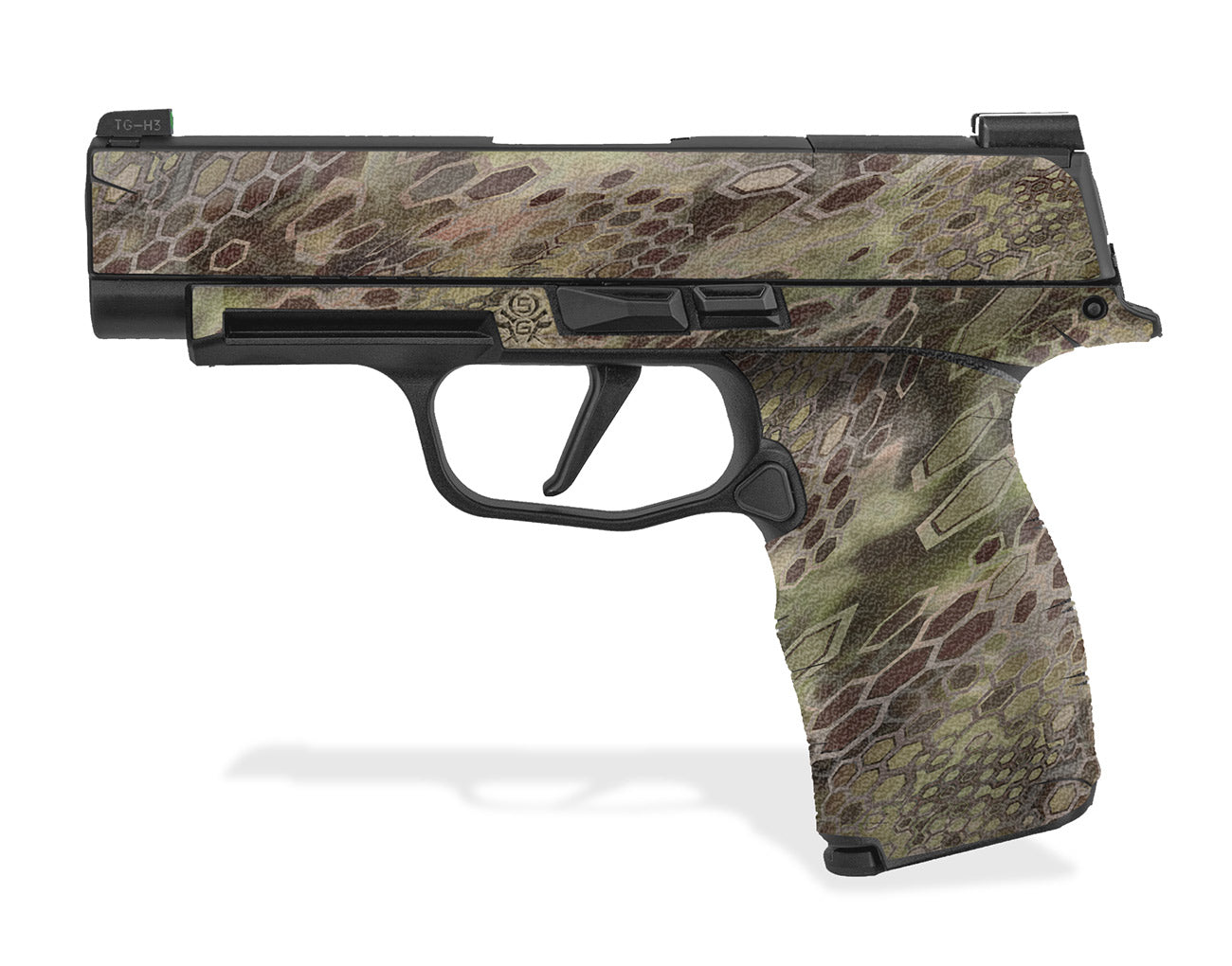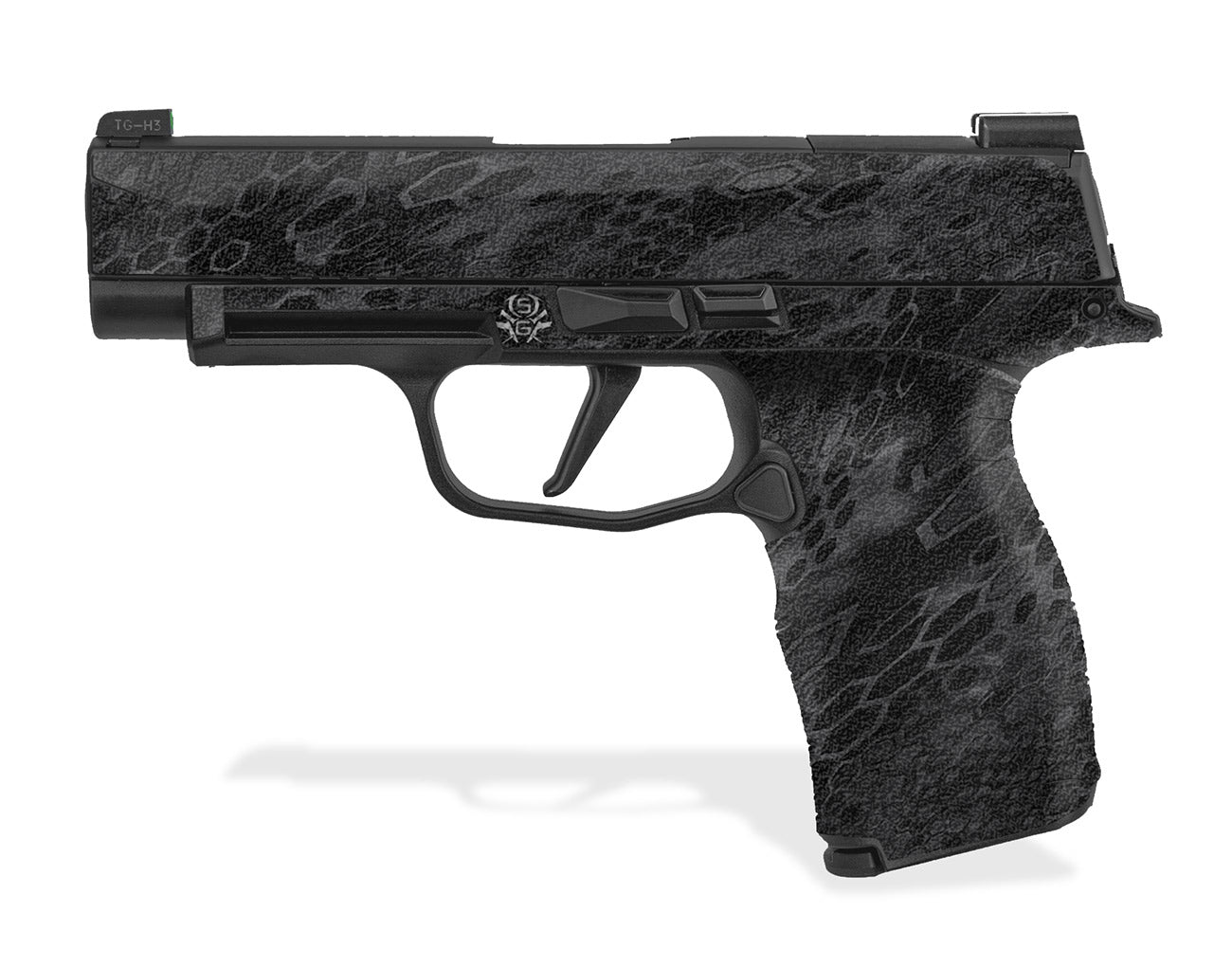 Sig P365-XL Decal Grip – Manufactured with a rubberized, textured, non-slip vinyl that gives you a firm secure grip and won’t chaff or irritate your skin. Made with 3M adhesive specially formulated to mold into textured surfaces and stay on through harsh conditions. Cover just the frame of the P365XL or apply it to the slide as well. Cryptic Camo design.