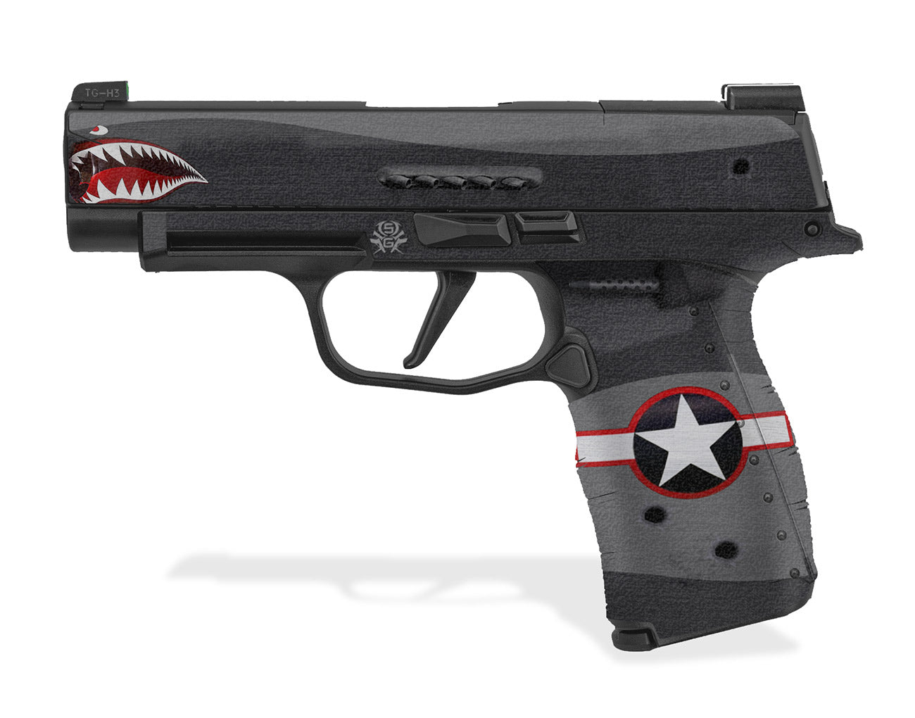Sig P365-XL Decal Grip – Manufactured with a rubberized, textured, non-slip vinyl that gives you a firm secure grip and won’t chaff or irritate your skin. Made with 3M adhesive specially formulated to mold into textured surfaces and stay on through harsh conditions. Cover just the frame of the P365XL or apply it to the slide as well. War Machine design.