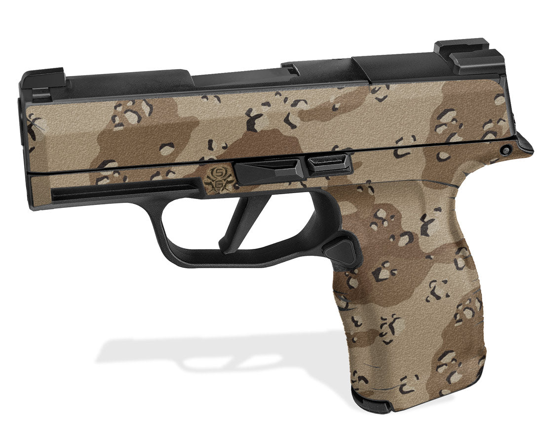 Sig P365-X & P365X ROMEO Zero Decal Grip. Features an innovative rubberized, textured grip surface for better grip and more control. Cover just the frame or apply it to the slide as well. Desert Camo design. Note: Slight trimming is required for ROMEO sight.